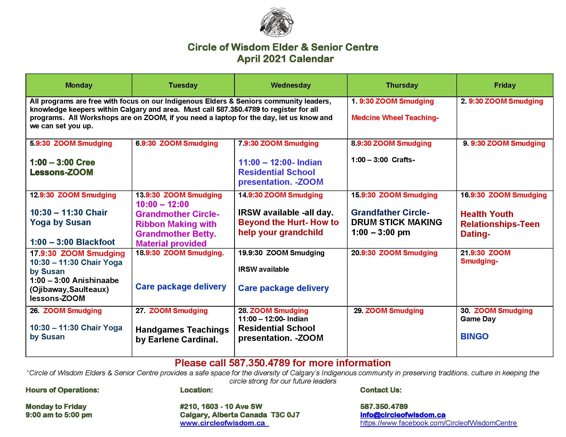 Click here for a PDF version of the Calendar…